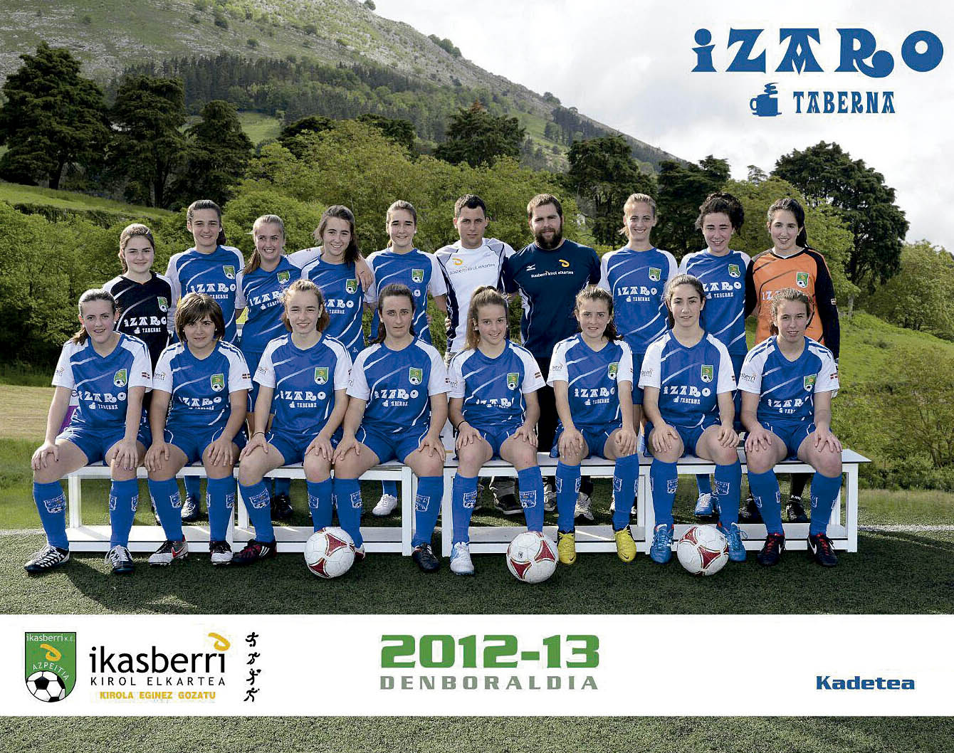 Ikasberriren kadete mailako taldean. Eserita, ezkerretik hasita bosgarrena da Joane Korta. (Utzitakoa)
