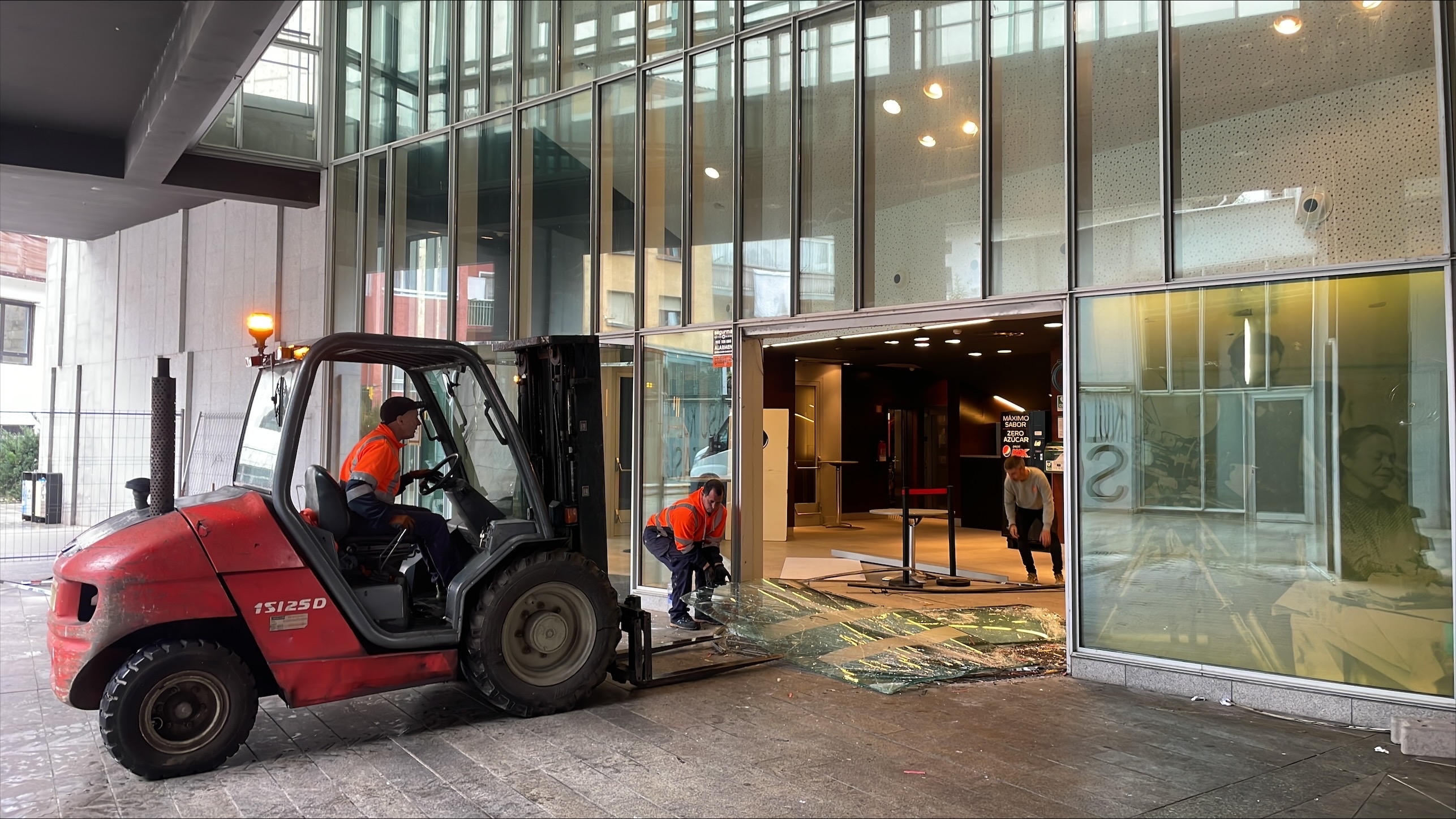 Soreasu antzokiko sarrera nagusian ziren ate birakariak kentzen hasi dira gaur udal langileak. Azken hilabeteetan ez dira erabilgarri izan sarrera-irteerako ate horiek, eta herritarrek leihatilaren ondoko atetik egin dituzte antzokiko sartu-irtenak.