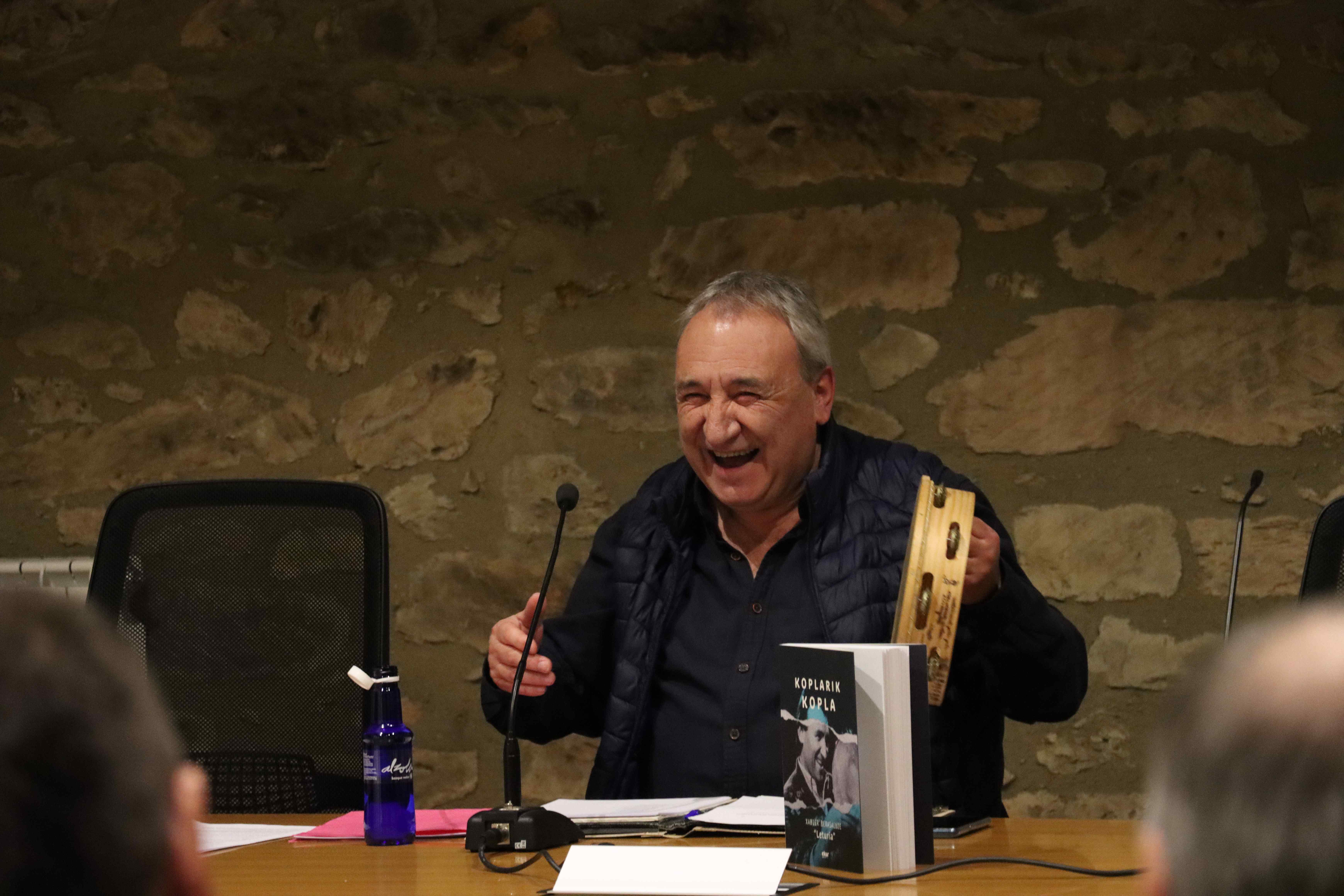 45 urteko ibilbideaz hizketan aritu zen pandero jotzaile ezaguna atzo Basazabalen, eta argitaratu berri duen liburuan jaso dituen 154 kopla sortetako batzuk kantatu ere egin zituen.