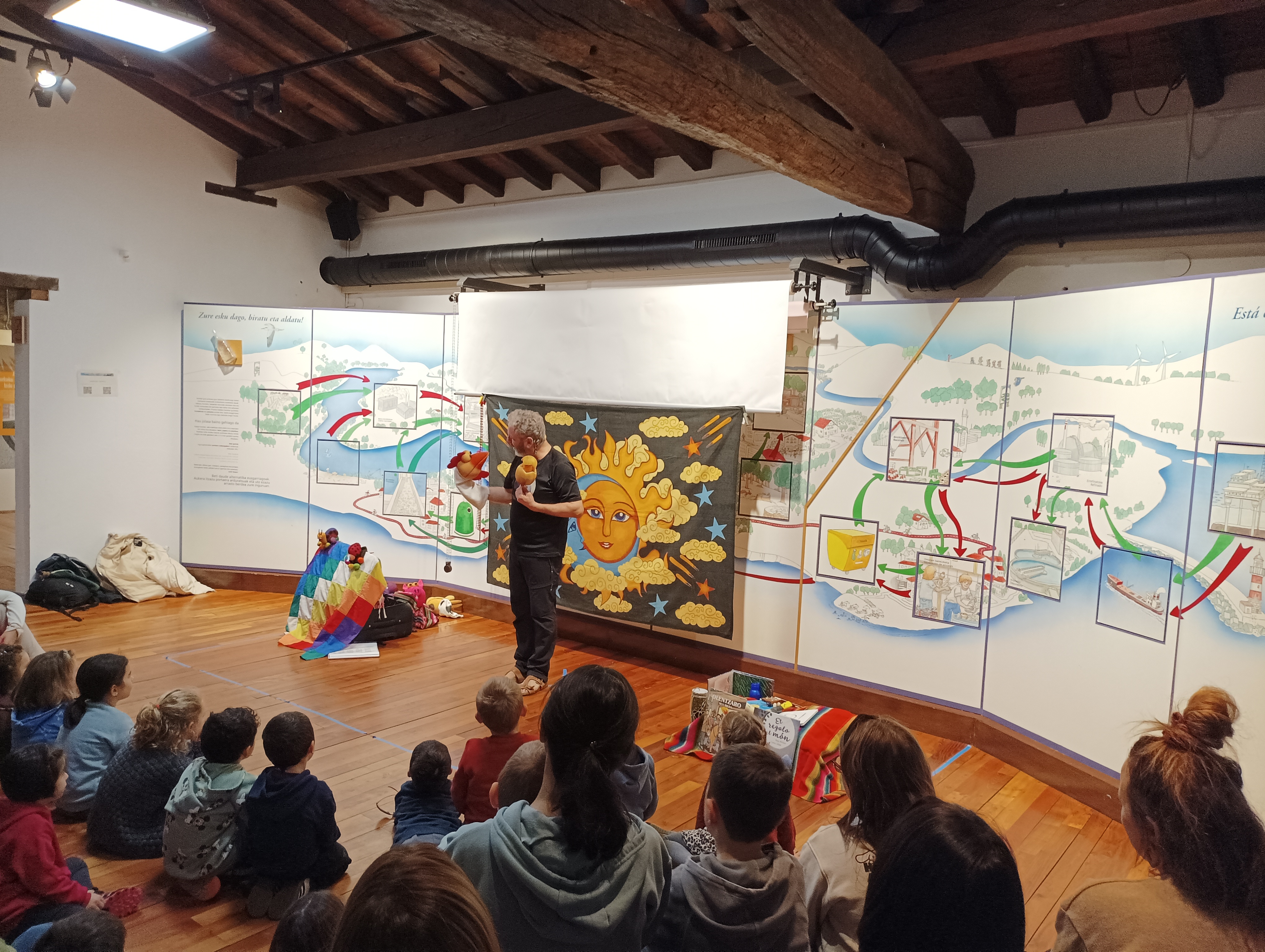 Ipuinak, txotxongiloak eta dantzak uztartu zituzten emanaldian. Hainbat herritar izan ziren Egibar baserrian.