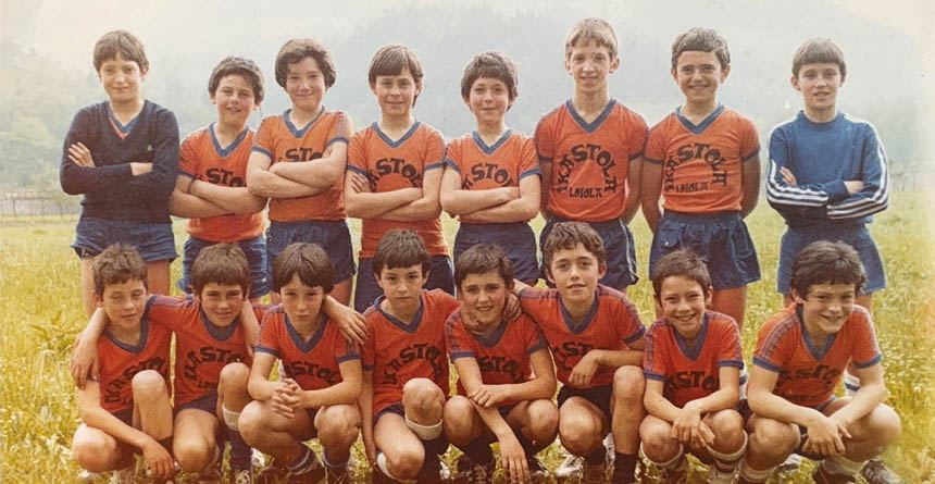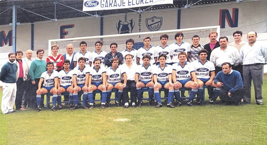 Danborradan, Alkartasuna taldeko kideekin; ezkerretik hasita aurrena da Azkune. (Utzitakoa)