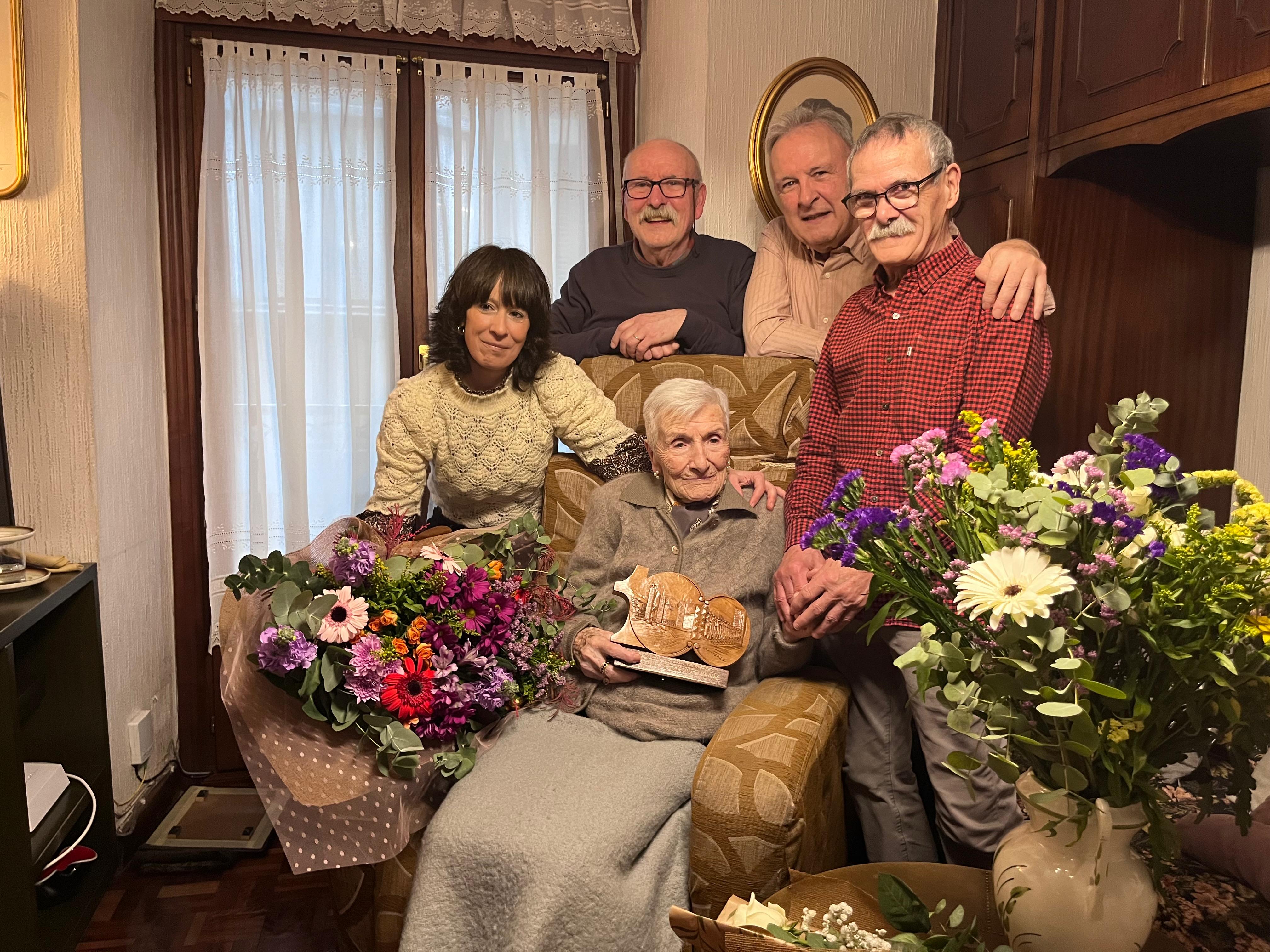 Ez da eguneroko kontua herritar batek 100 urte betetzea. Bada Josefa Lazkanok gaur bete ditu, eta Azpeitiko Udalaren izenean, Leire Goenaga zinegotziaren bisita jaso du etxean. Bere hiru semeek lagunduta hartu du etxean Goenaga, eta honek Arantzazuko santutegia zizelkatuta duen oroigarria eta lore sorta eman dizkio opari Lazkanori.