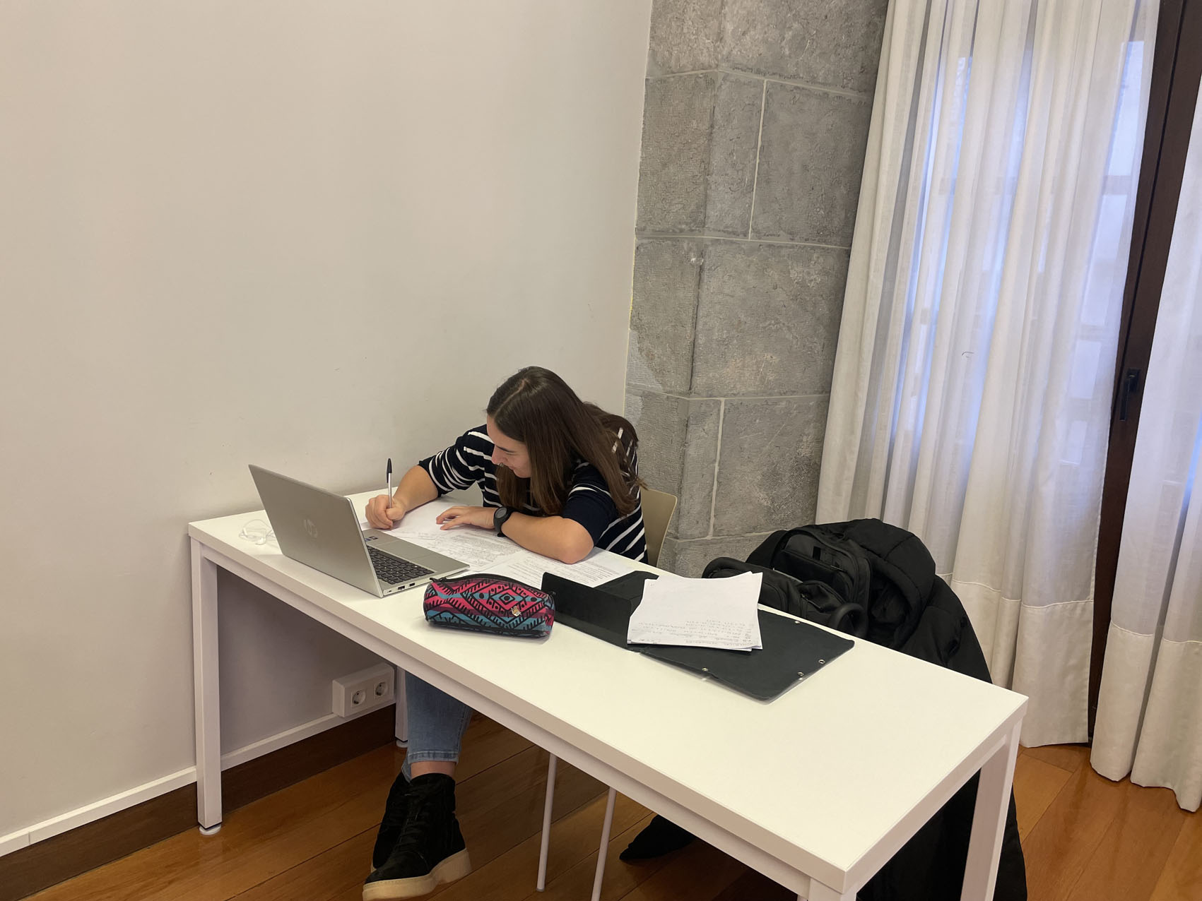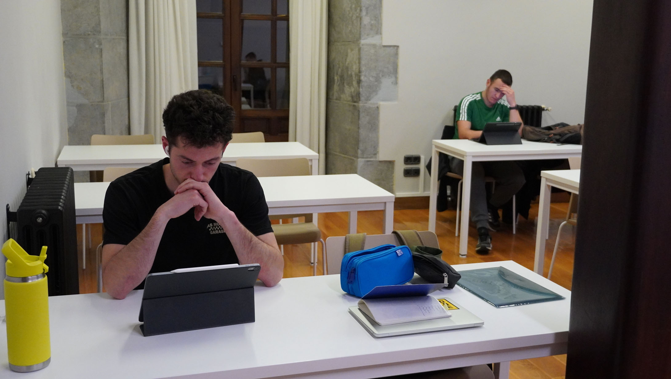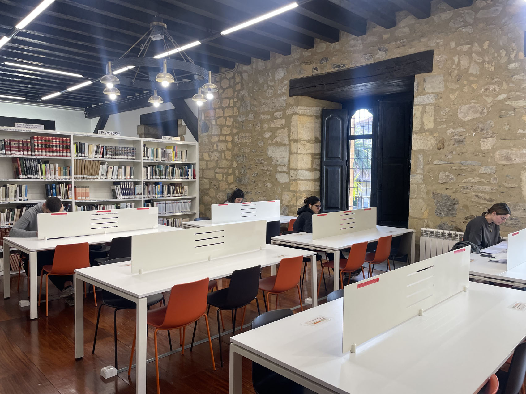 Isiltasuna da nagusi, biko edota lauko mahaietan banan-banan jarrita daude, bakoitza berera. Mahaiaren gainean ordenagailu eramangarriak, hitzez, zenbakiz, formulaz betetako orri zuriak, arkatzak eta boligrafoak, kantinplora ere bai, eta bat edo beste aurikularrekin. Horrelakoa da giroa ikasleentzako egokituta dauden Sindikatu Zaharreko eta Enparan dorretxean kokatuta dagoen Udal Liburutegiko ikasgeletan. Boladaka jende gehiago ala gutxiago biltzen da ikasteko egokitutako burbuila horietan, baina beti dago bateren bat ikasten. Batxilergoko eta unibertsitateko azterketa garaietan egoten dira jendez beteenak toki horiek; azkenengoz, esaterako, abenduan eta urtarrileko lehen asteetan. Izan ere, erabiltzaile gehienak Batxilergoko, unibertsitateko nahiz masterretako ikasleak edota lan deialdi publikoetarako prestatzen ari diren herritarrak dira.