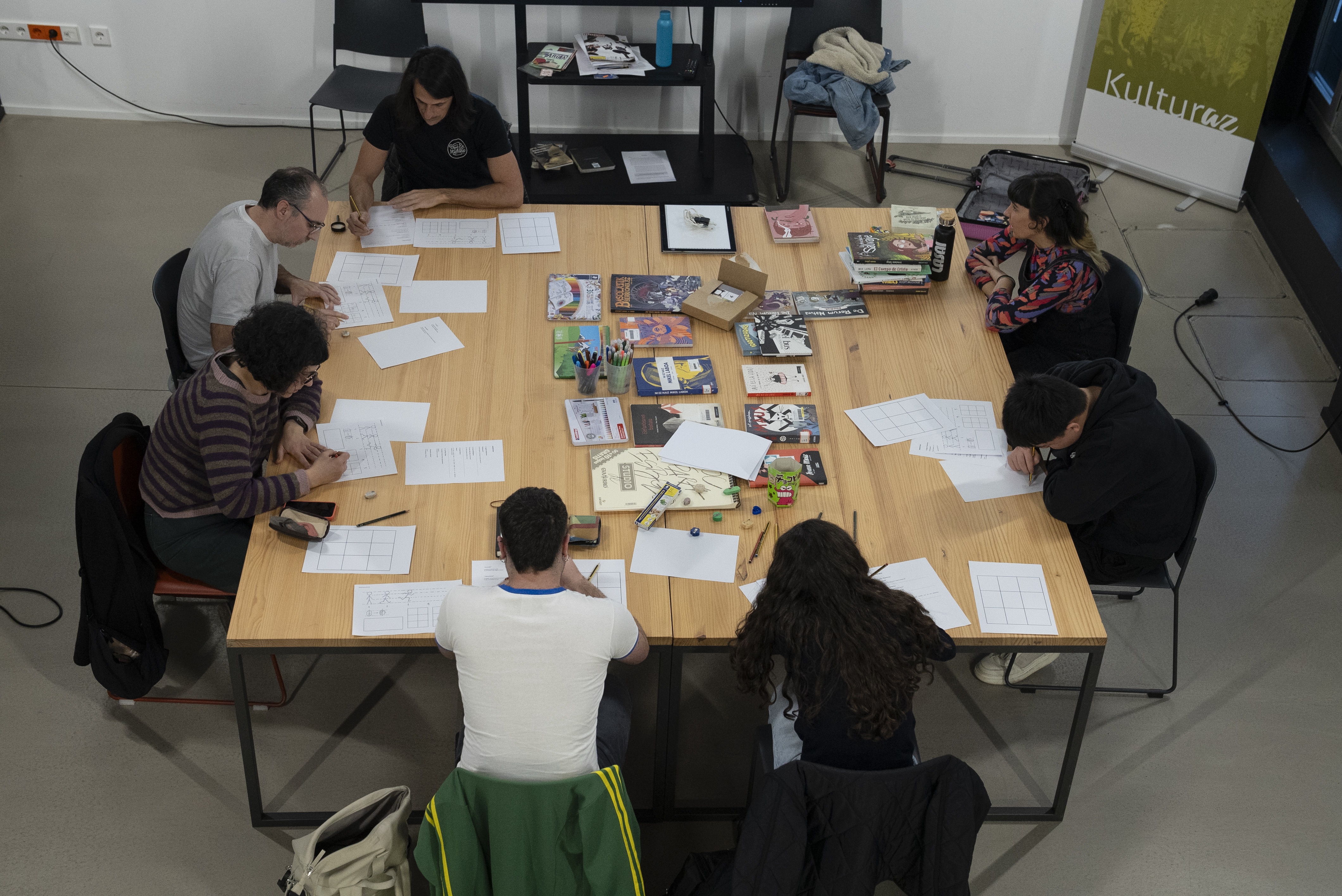 Ainara Azpiazu Axpi ilustratzaile, muralgile eta komikigileak Grafiaz Betea egitasmoaren barruko saioa eskaini zuen atzo, osteguna, Dinamoa sormen gunean. Hain zuzen ere, komikigintzari buruzko tailerra eskaini zuen Axpik, 18:00etan hasita. Hainbat herritar bertaratu ziren, eta denen artean komikigintzaren ertzak jorratu zituzten.