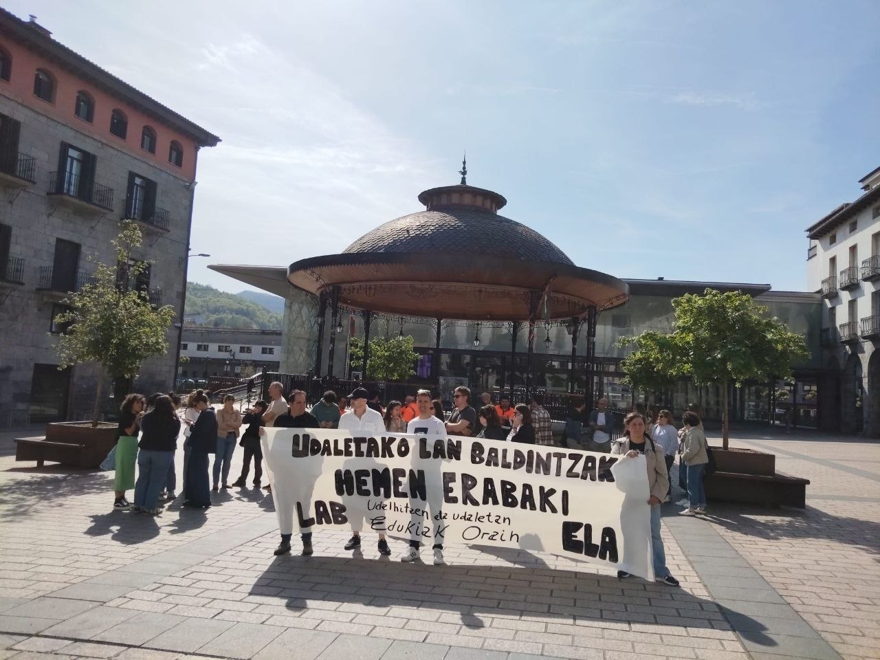 Azpeitiko Udaleko hainbat langilek bat egin dute ELA eta LAB sindikatuek gaur eguerdirako deitutako bi orduko lanuztearekin. Lanuztearen garaian plazan elkarretaratzea egin dute, Udaletako lan baldintzak hemen erabaki lelo zuen pankartaren atzean.