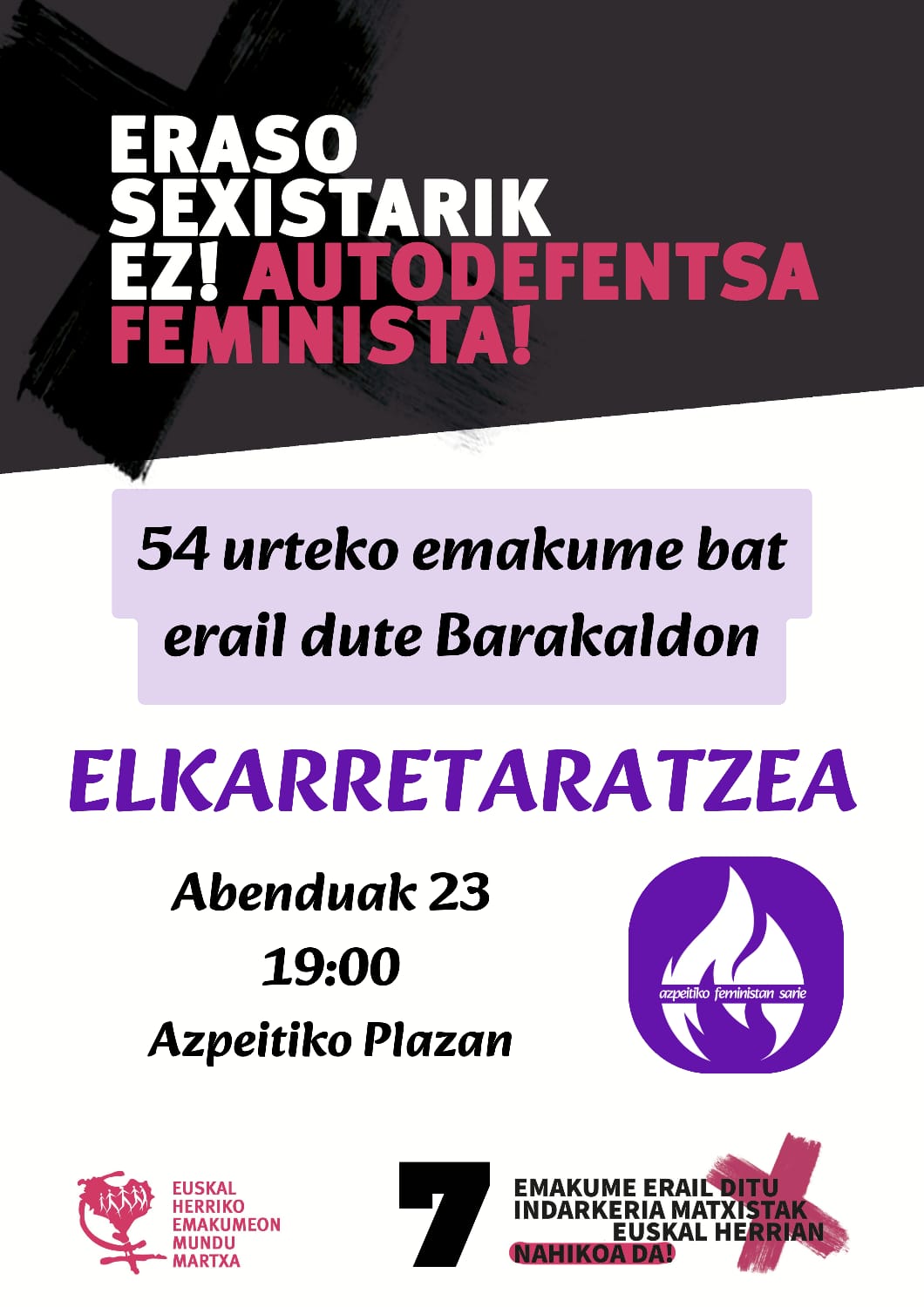 Herenegun, abenduaren 21ean, indarkeria matxistaren aurpegi krudelenak berriro kolpatu gintuen. Urtea amaitzear denean, beste emakume bat erauzi dute gure artetik, kasu honetan, Barakaldon; zazpigarrena, aurten.