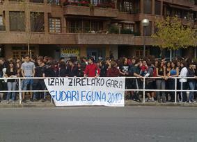 Ikasberri, Iraurgi eta Urolako ikasleek elkarretaratzea egin dute gaur, irailak 27, Angel Otaegi eta Juan Paredes 'Txiki' afusilatu zituzteneko urteurrena gogoratuz. 150 ikasle inguru elkaru dira Gudari Eguneko deialdiari erantzunez, bariantean, Sanjuandegiko biribilgunearen ondoan. Ikastetxeetan ikurrinak ere jarri dituzte, dolu-xingolekin eta Otaegi, Pedro Mari Isart 'Pelitxo' eta Dionisio Aizpuru 'Kurro'-ren argazkiekin. Informazio gehiago